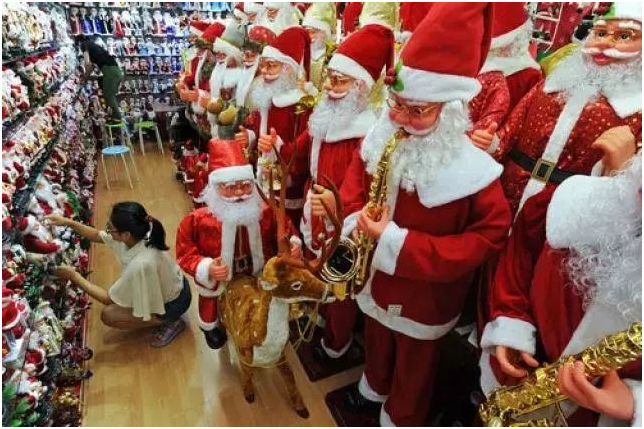 报道称,为了及时收货,世界各地的圣诞节用品交易商每年都提前数月前往义乌。他们的第一站往往是义乌国际商贸城。